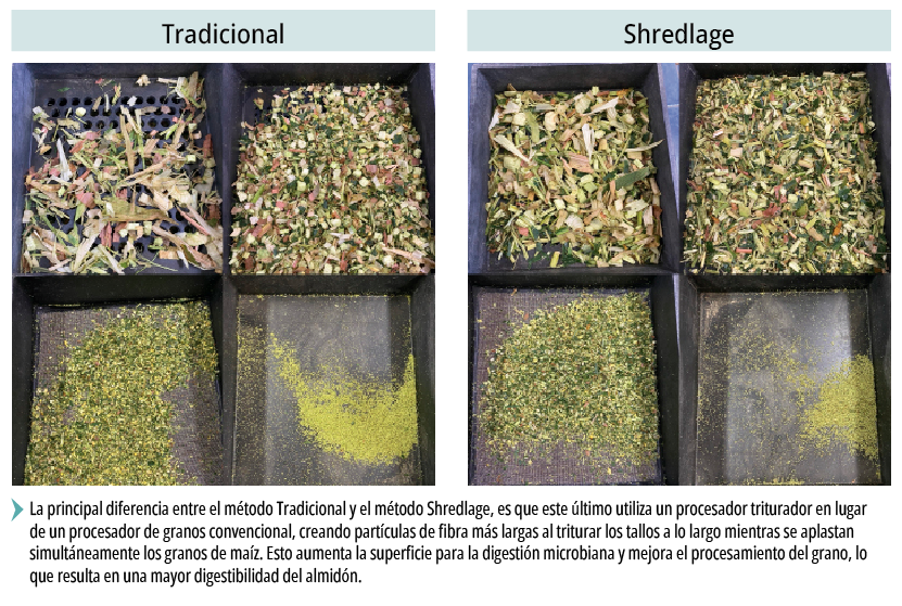 Mas allá de obtener un nivel de porcentaje de almidón, el objetivo estaría enfocado más bien en mejorar su digestibilidad, por ello es relevante el nivel de procesamiento del grano que depende del tipo de cabezal de la cosechadora. Equipos modernos (tipo Shredlage) permiten una trituración más fina, exponiendo mucho más el material del grano a la fermentación por parte de las bacterias, mejorando la fermentación y la disponibilidad del almidón.